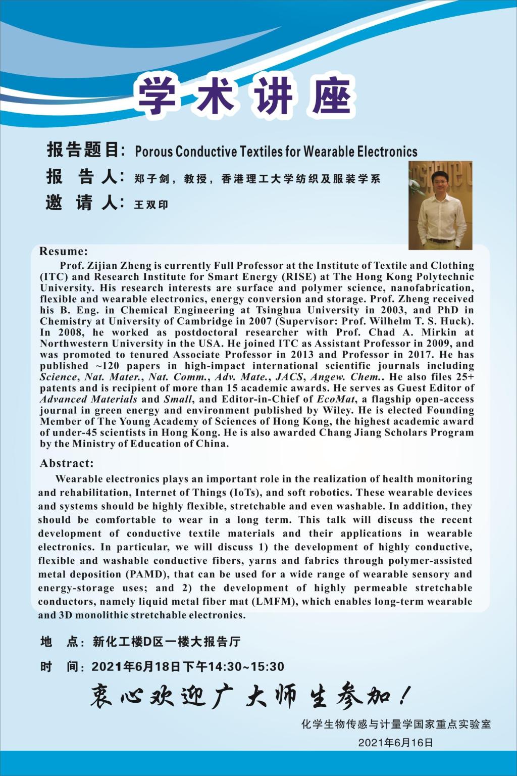 郑子剑 教授 香港理工大学纺织及服装学系