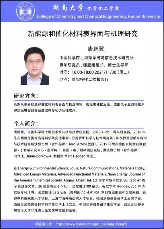 化工院:新能源和催化材料表界面与机理研究