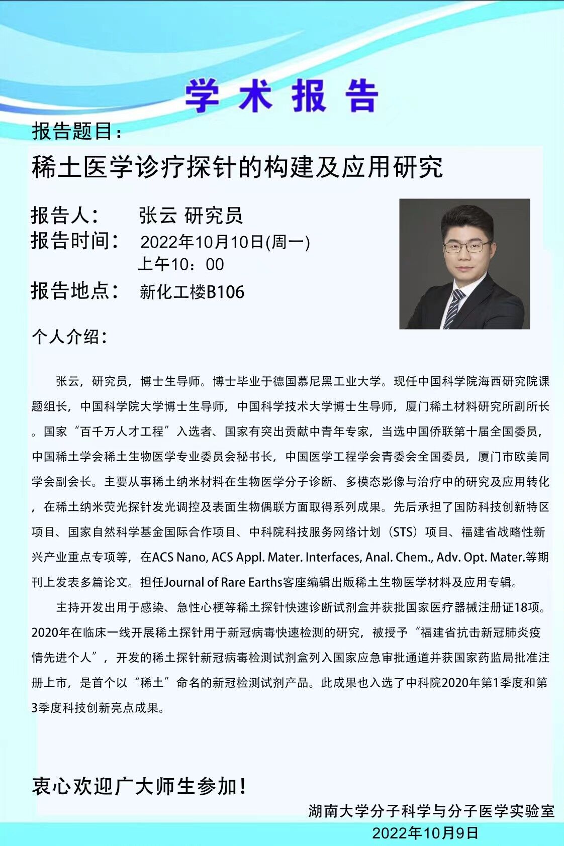 讲座时间 2022年10月10日(周一)上午10: 00