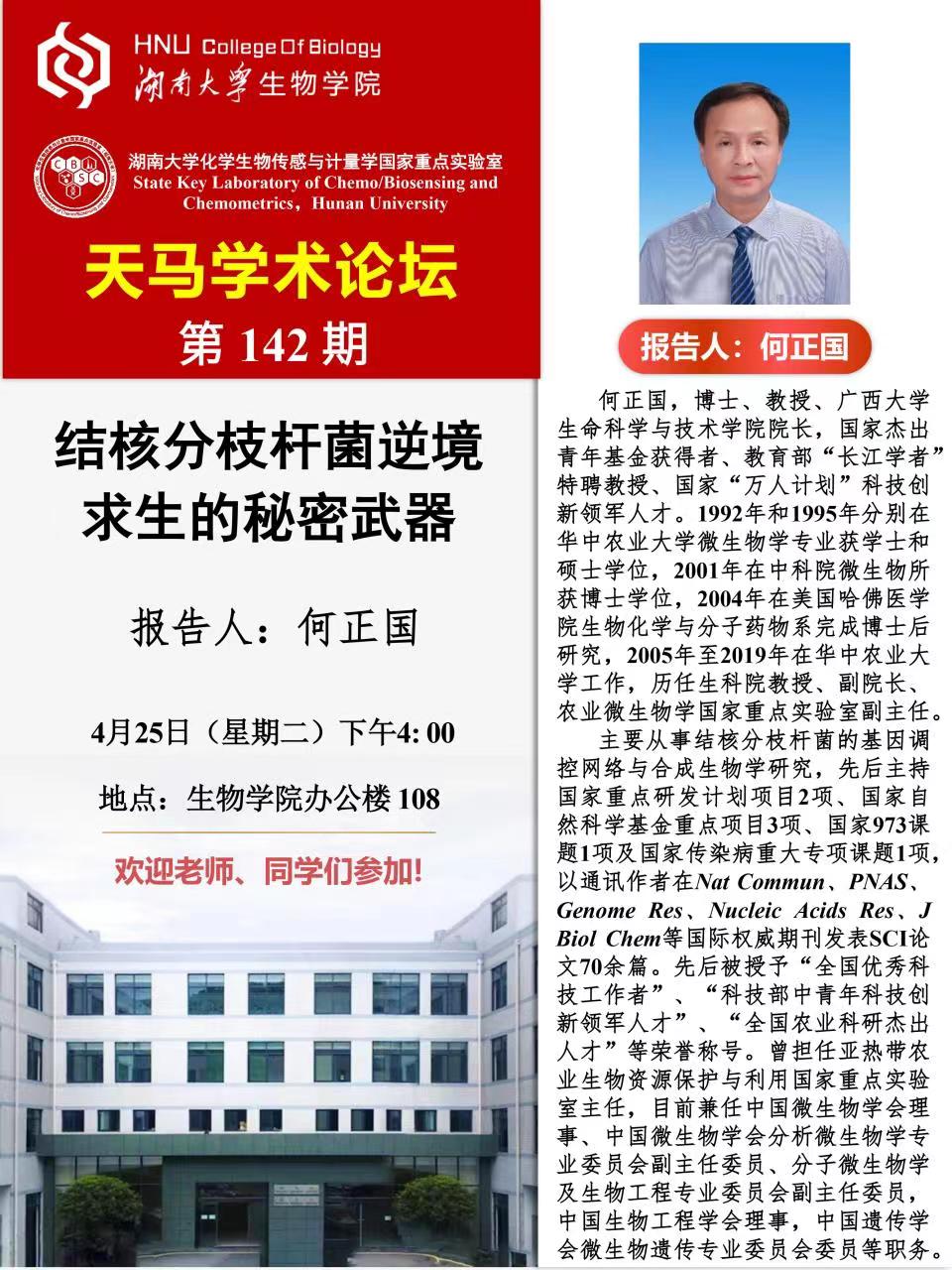 学术地点 生物学院办公楼108 主讲人 何正国 教授