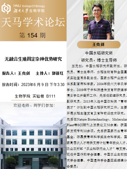 学术地点 生物学院实验楼B111 主讲人 王克剑