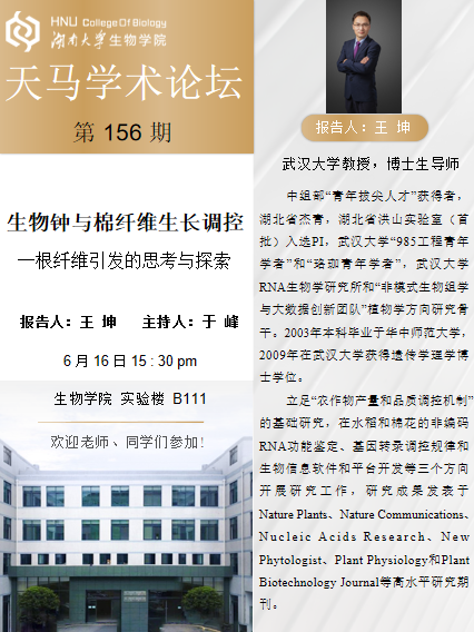 学术地点 生物学院实验楼B111 主讲人 王坤