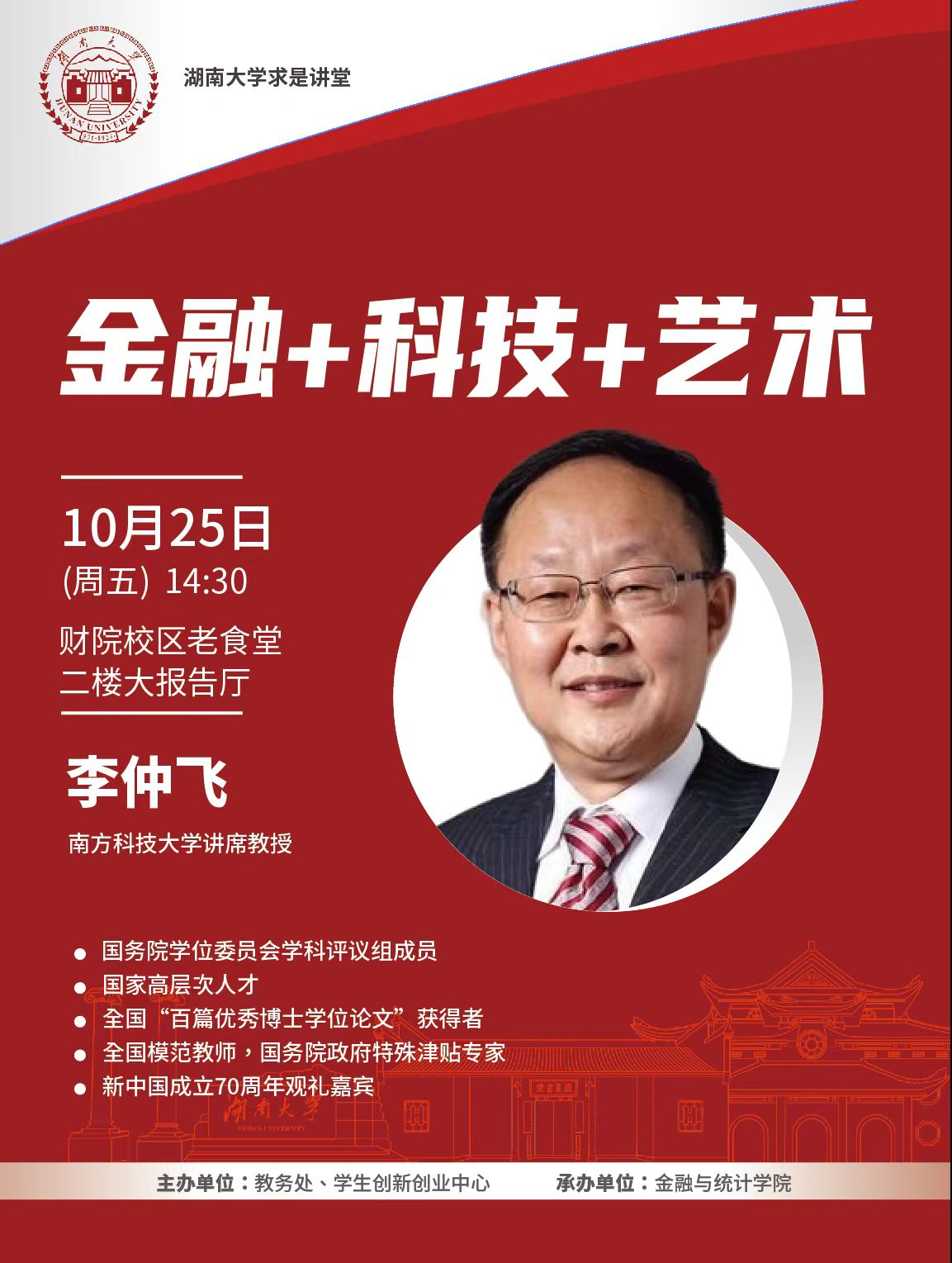 学术地点 财院校区老食堂二楼大报告厅 主讲人 李仲飞 南方科技大学讲席教授