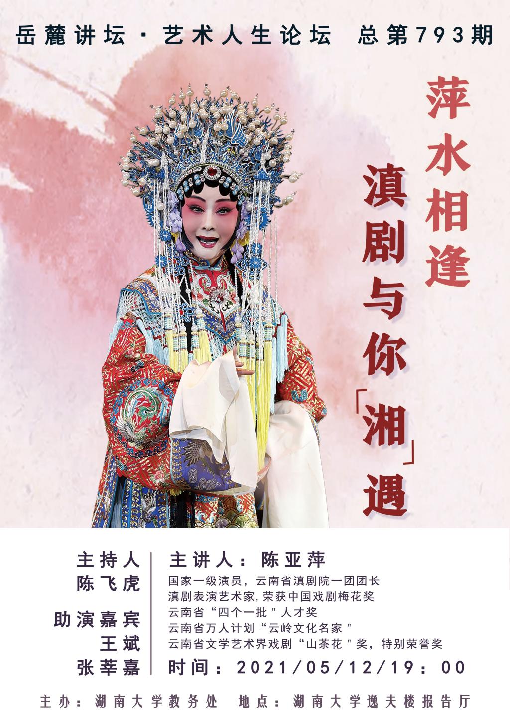 主讲人:陈亚萍(国家一级演员,云南省滇剧院一团团长,滇剧表演艺术家,荣获中国戏剧梅花奖、云南省“四个一批”人才奖、云南省“云岭文化名家”、云南省文学艺术界戏剧“山茶花”奖、特别荣誉奖)