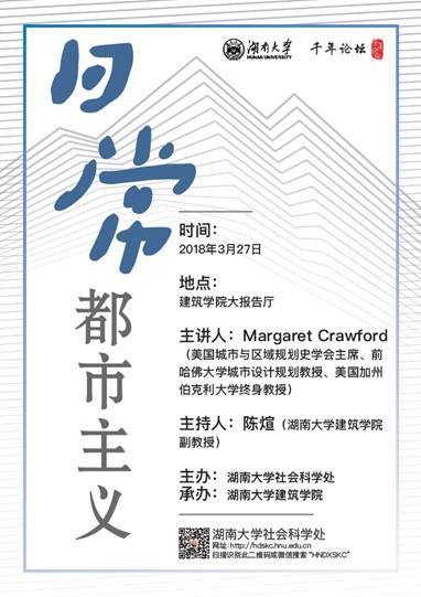 主讲人:Margaret Crawford(美国城市与区域规划史学会主席、前哈佛大学城市设计规划教授、美国加州伯克利大学终身教授)