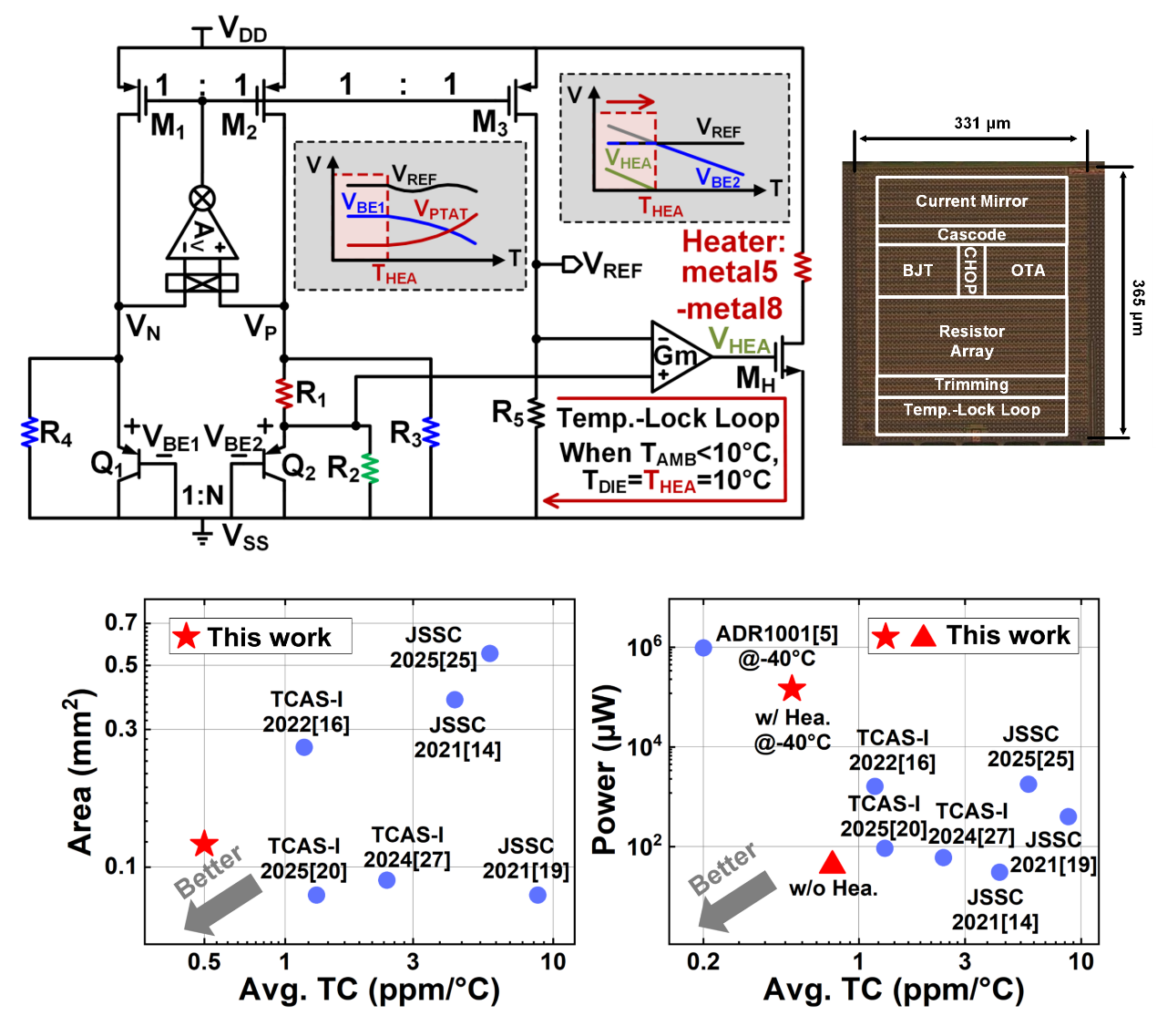 2026/01/25半导体学院陈卓俊教授团队成功研制出一款亚ppm级高精度电压基准芯片高精度电压基准源是智能电表、工业传感器等精密测量系统的核心器件,这类系统通常要求电压基准在工业级温度范围(−40℃ 至 85℃)内具有低于1ppm/℃的超低温度系数。然而,传统的带隙基准受限于双极性晶体管基极... -