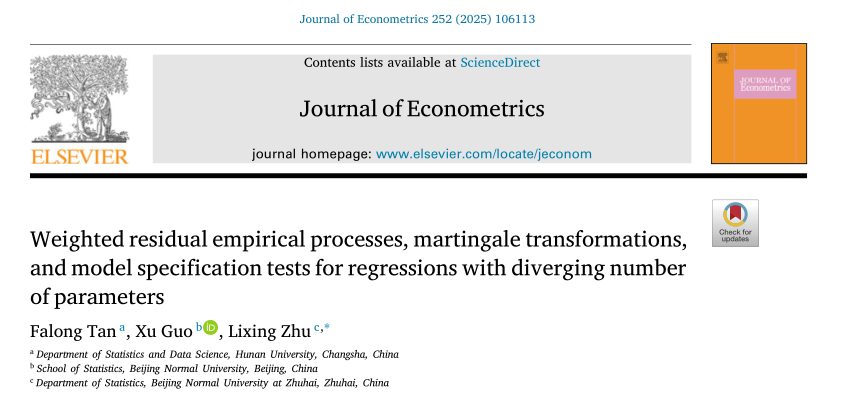 2025/10/15金统院谭发龙教授在高维统计领域取得重要进展近日,金融与统计学院谭发龙教授在高维统计领域取得研究进展,研究成果以“Weighted residual empirical processes, martingale transformations,and model specification tests for regressions with diverging ...