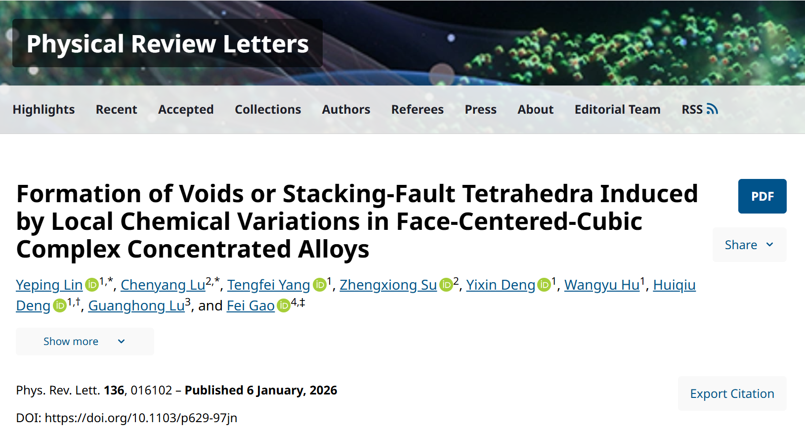2026/01/08物电院邓辉球教授团队在原子尺度解码核材料辐照缺陷演化之谜核能材料在反应堆内服役过程中长期经受高通量中子辐照、高温和高腐蚀性冷却介质等极端条件的考验,这些极端条件会导致材料内部产生大量的缺陷(例如空位、四面体堆垛层错和空洞等),严重影响其性能与使用寿命。... -