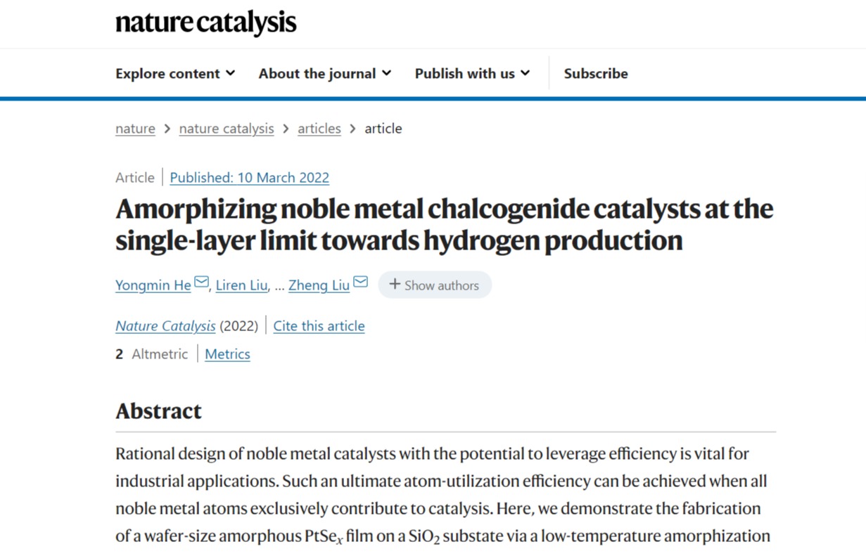 2022/03/11何勇民课题组在“单原子层”贵金属催化剂研究上取得重要进展近日,我校化学化工学院何勇民教授和新加坡南洋理工大学刘政教授、南京航空航天大学张助华教授团队合作,设计了单原子层贵金属催化剂,该研究成果以“Amorphizing noble metal chalcogenide catalysts at the sin... -